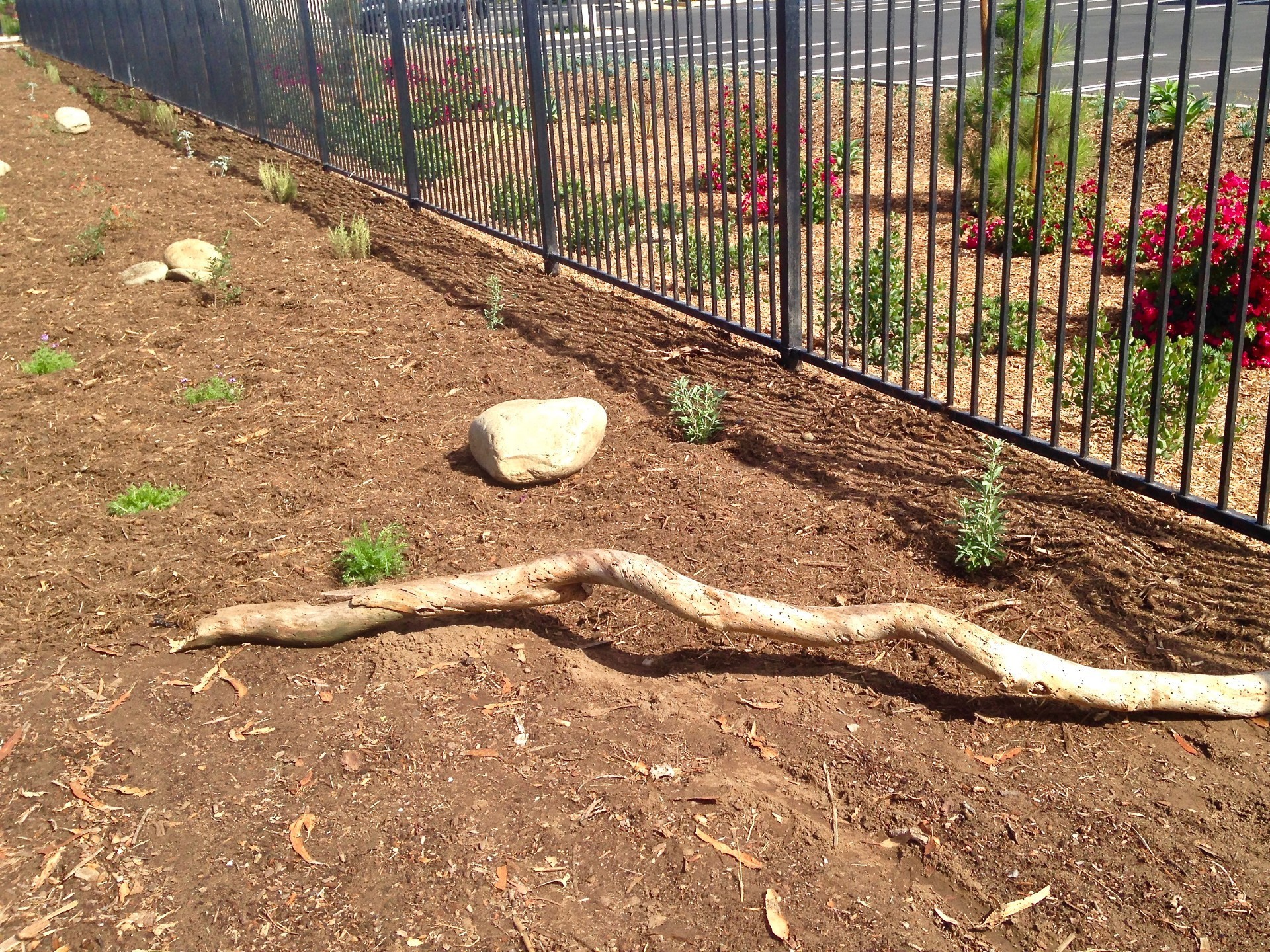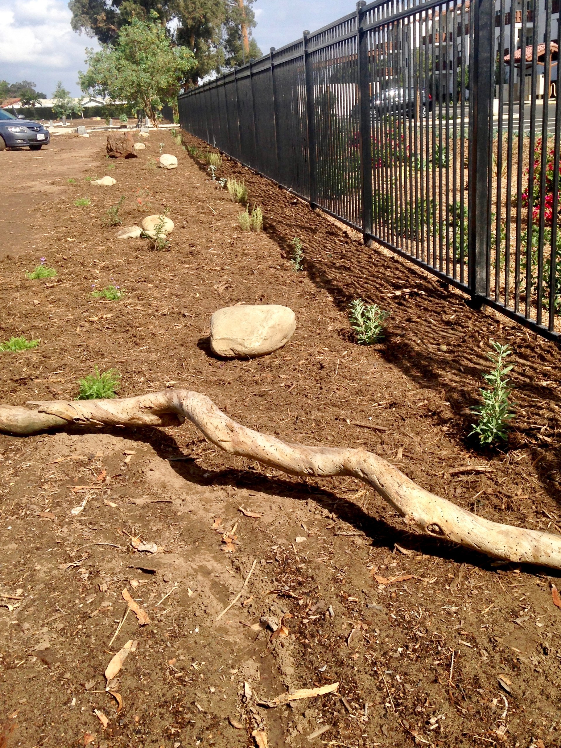 In a nutshell, we will be planting California native, nectar-rich plants along the fence and tree lines to create habitat and food sources for the pollinators and a park-like, natural setting for people. The project will be completed in phases to make the workload and funding more manageable. See below for drawings and areas of need.